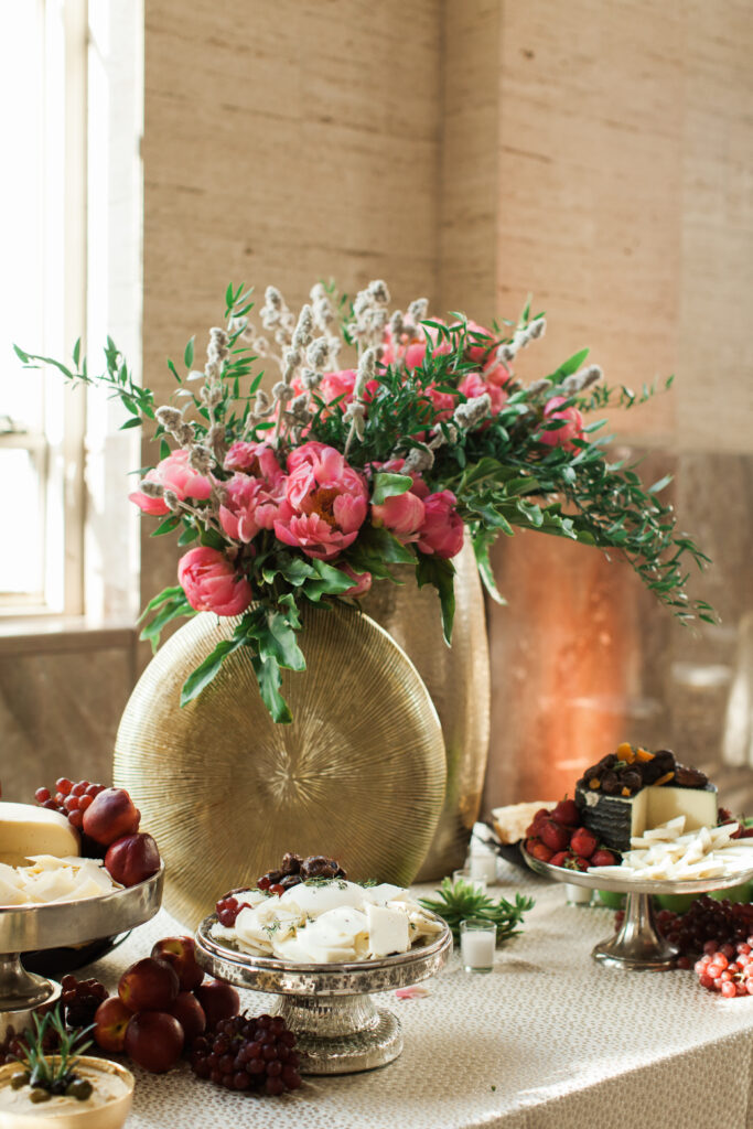 - Food & Drink Presentation: The cheese and fruit displays were artfully styled, complemented by luxe gold decor and succulents for a fresh twist. Chic bar setups and personalized drink stations showcased the couple’s attention to detail.