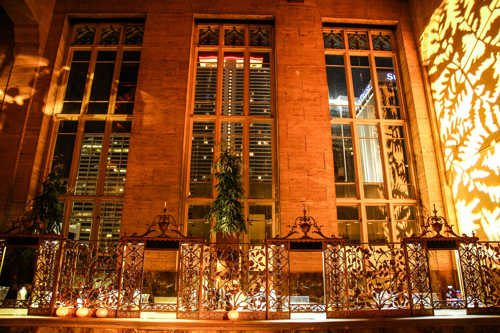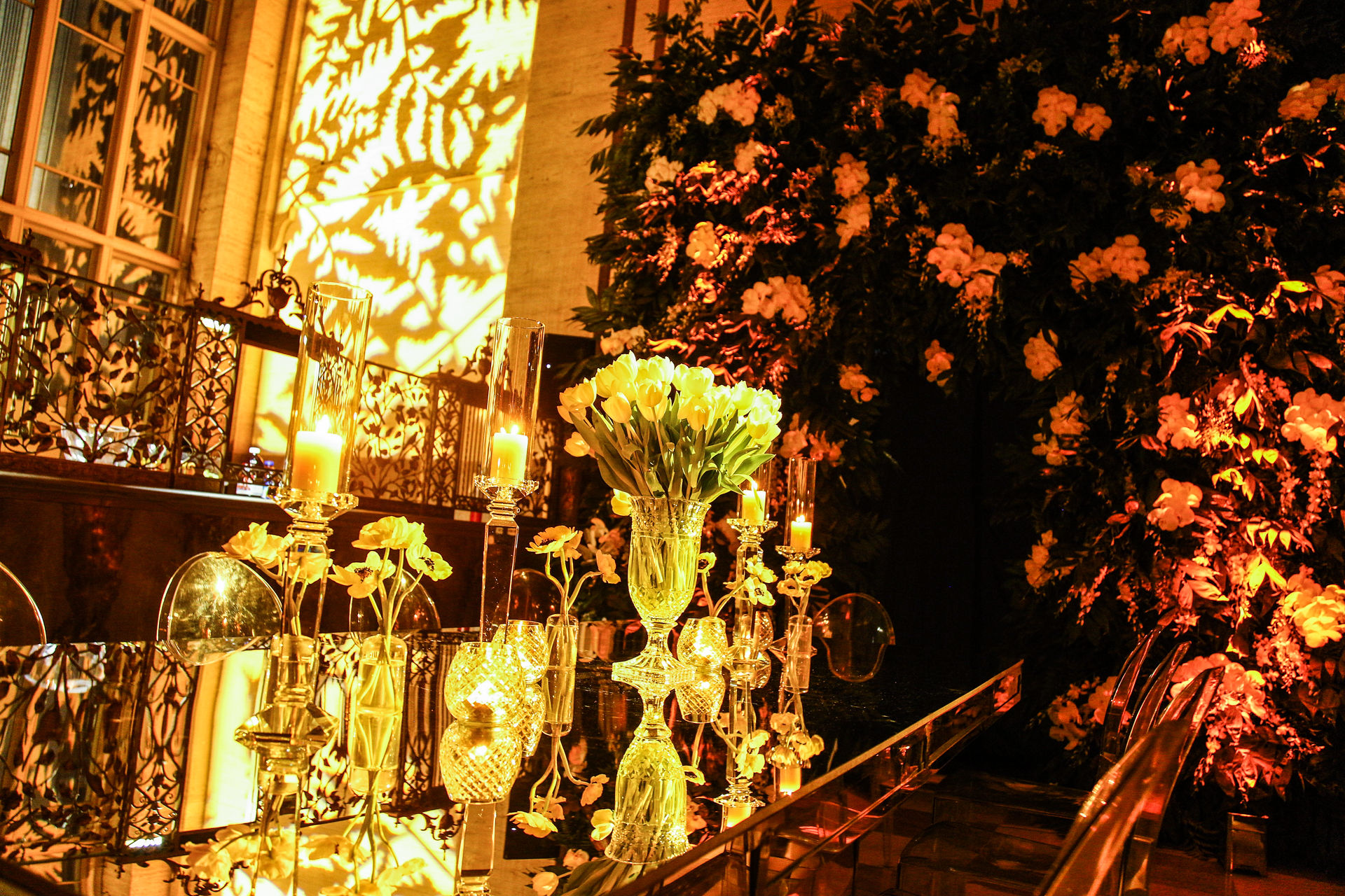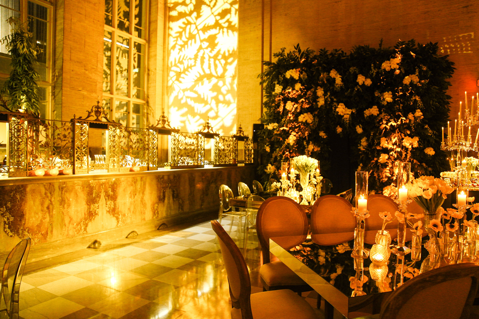 The main entrance of our venue was a sight to behold. The golden hues of the walls, combined with the intricate ironwork and the lush green plants, set the tone for the evening. As guests made their way through the grand entrance, they were welcomed into a space that promised an evening of elegance and delight.