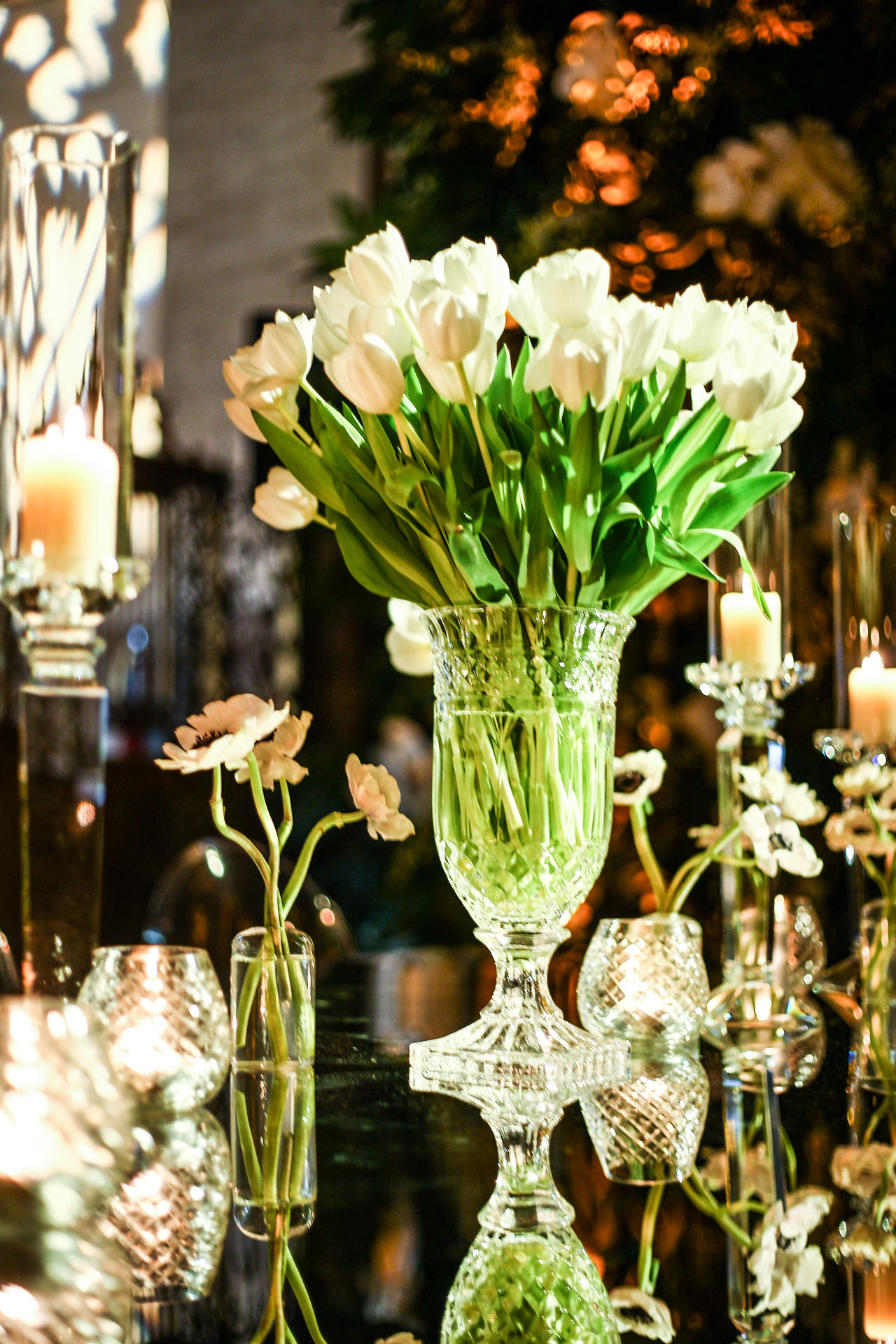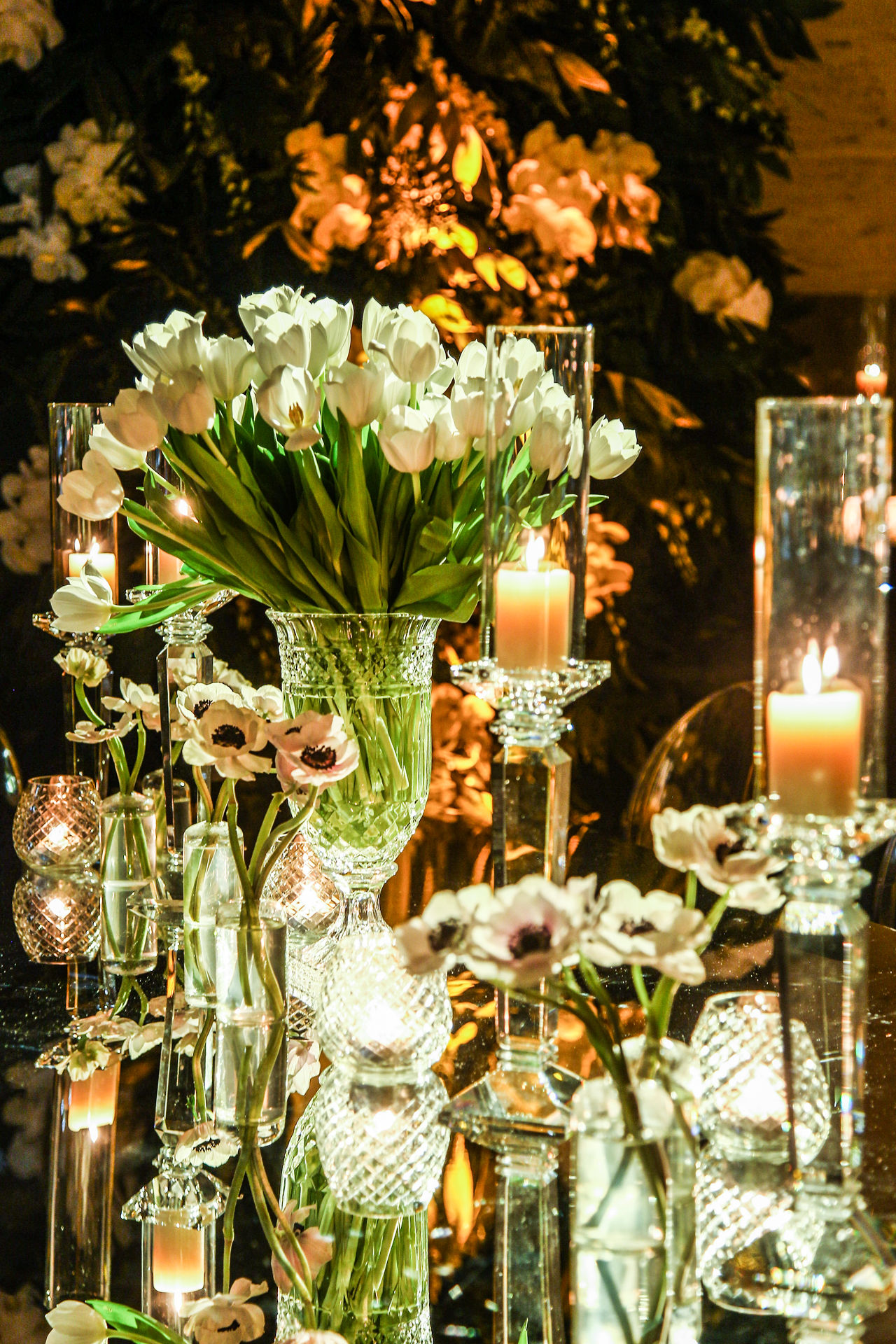 White tulips, poppies, and a variety of other flowers adorned the venue. Their pristine petals and elegant stems added a touch of nature’s beauty to the event. Paired with the glow of the candles, the floral arrangements exuded romance and luxury.