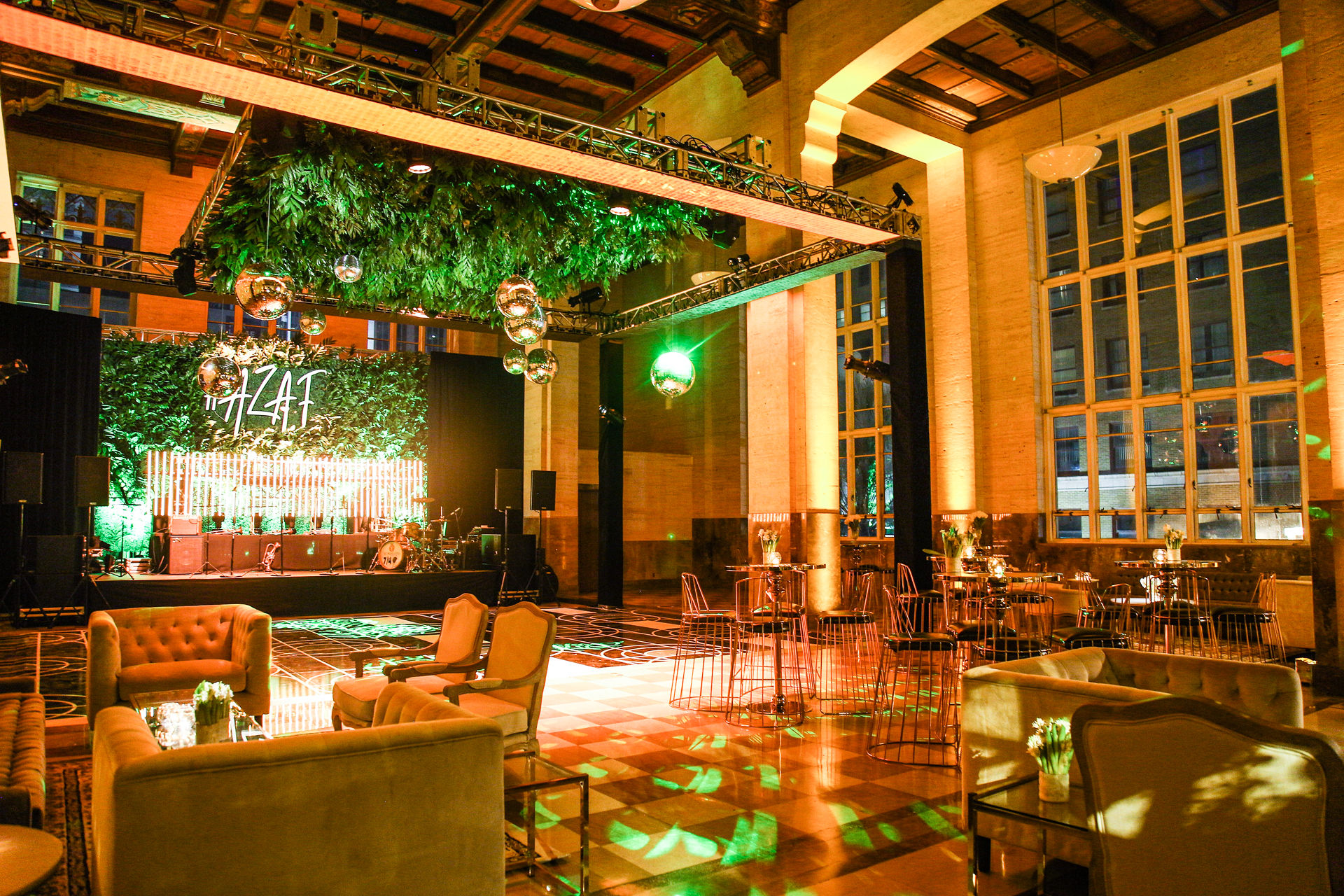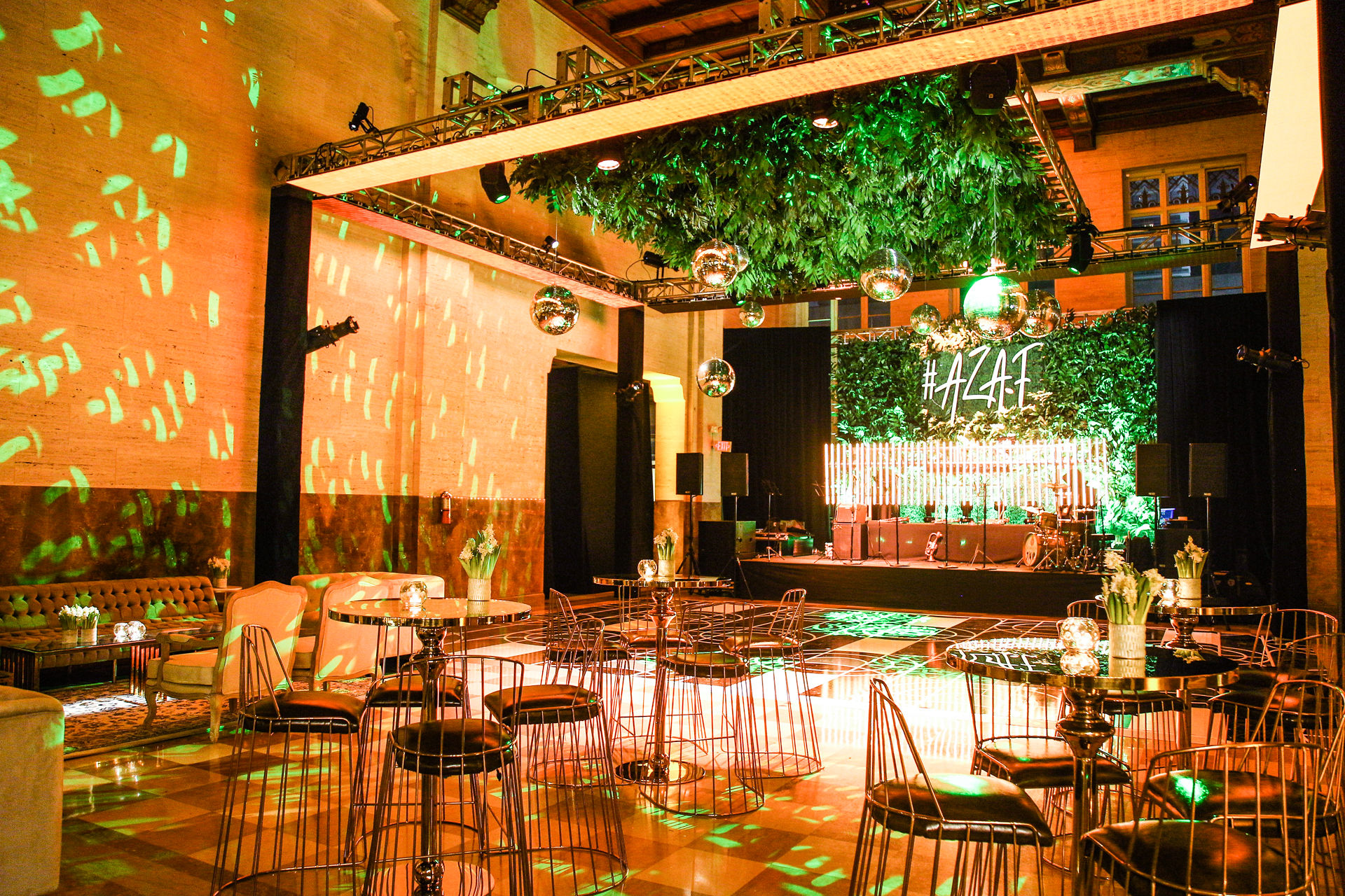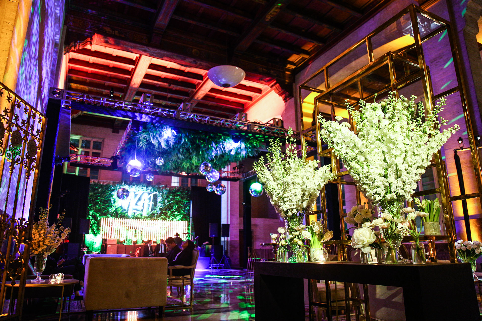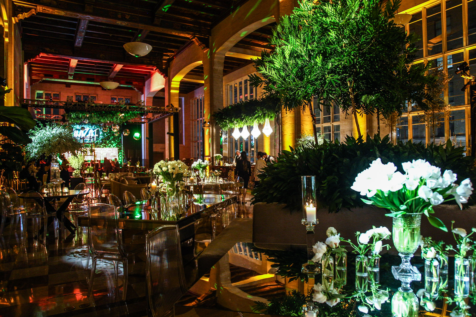 The event space was transformed into an ethereal wonderland with a mix of natural and decorative elements. Hanging plants and shimmering lights draped from the ceiling, creating a canopy that felt like a secret garden brought indoors. The lush greenery contrasted beautifully with the urban architecture of our venue, making it a picturesque setting.