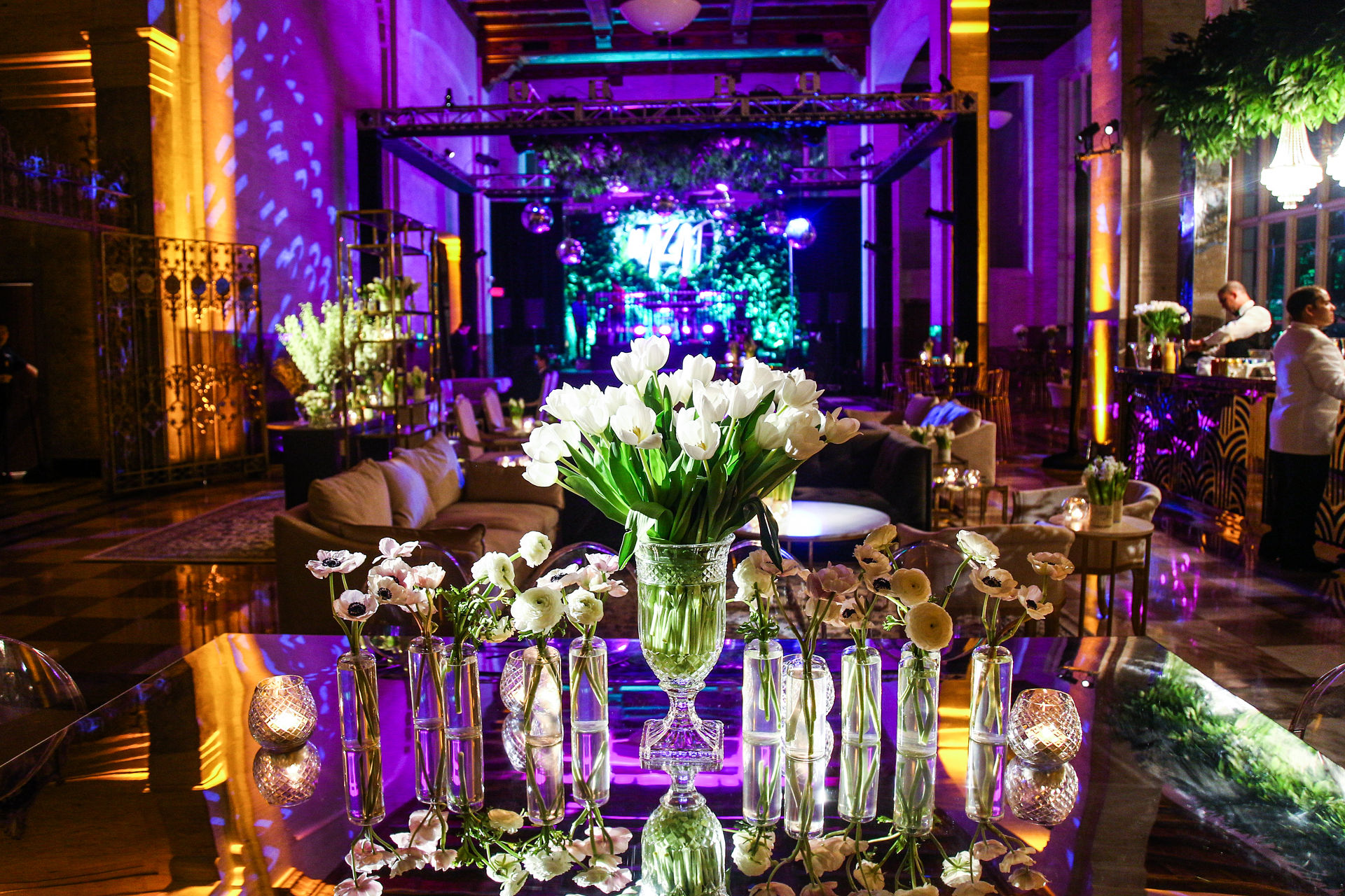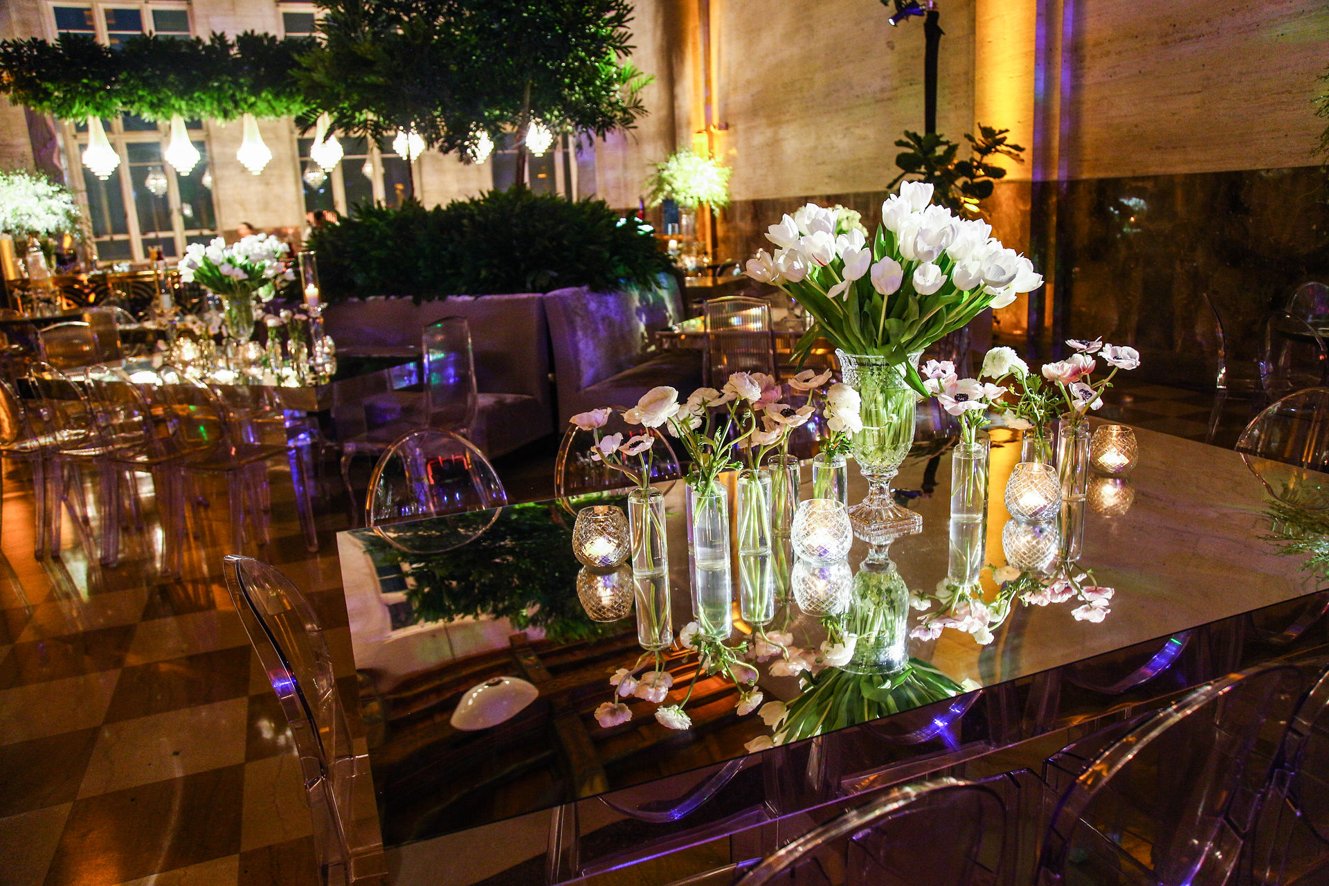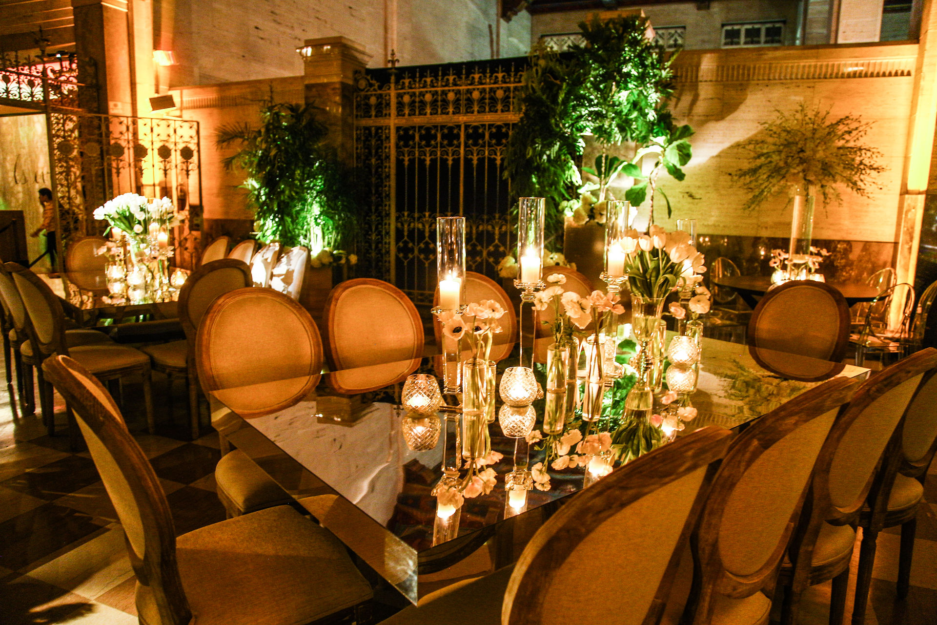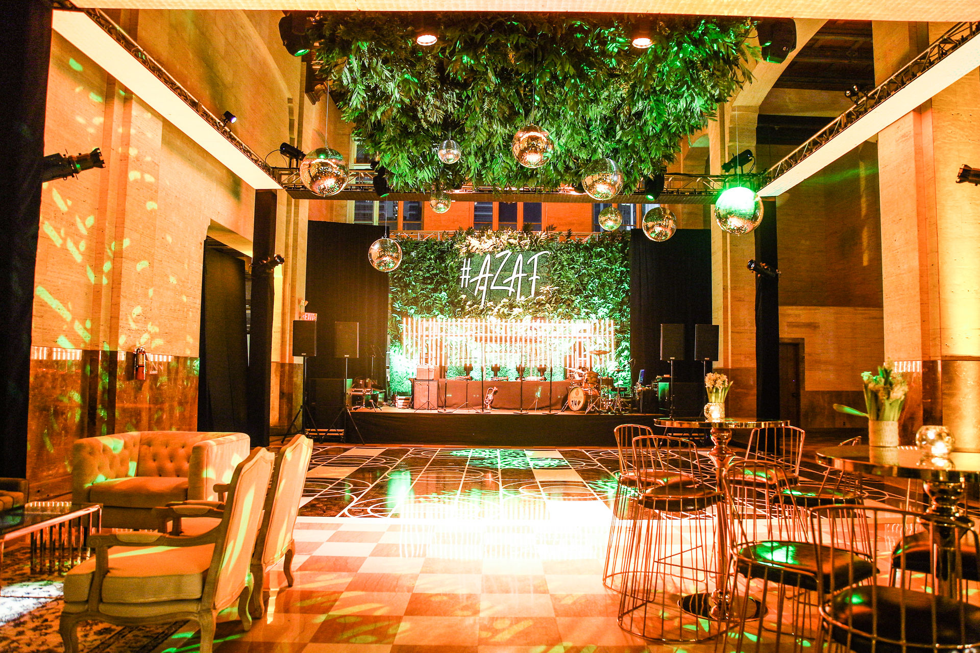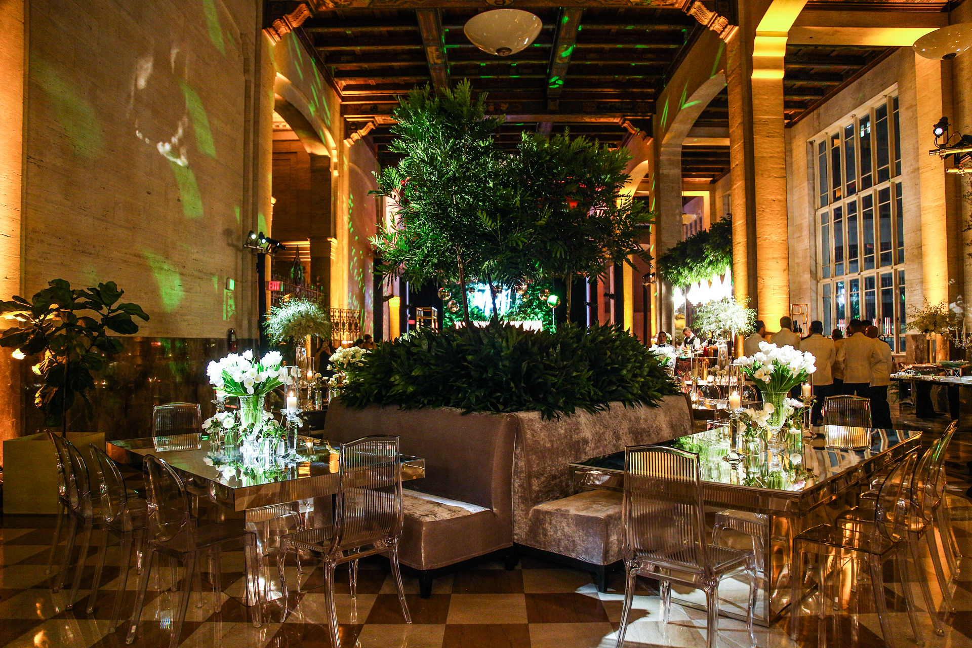 The event space was transformed into an ethereal wonderland with a mix of natural and decorative elements. Hanging plants and shimmering lights draped from the ceiling, creating a canopy that felt like a secret garden brought indoors. The lush greenery contrasted beautifully with the urban architecture of our venue, making it a picturesque setting.