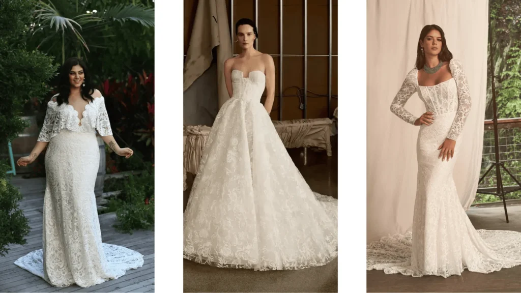 Lace has made a major comeback — not in its classic form, but in reinterpreted, modern motifs. French lace, graphic placements, and sculptural applications give a nod to tradition while remaining thoroughly contemporary. Whether you’re planning a luxury wedding in Florida or an intimate beach wedding venue, lace continues to be a symbol of bridal sophistication. Who What Wear